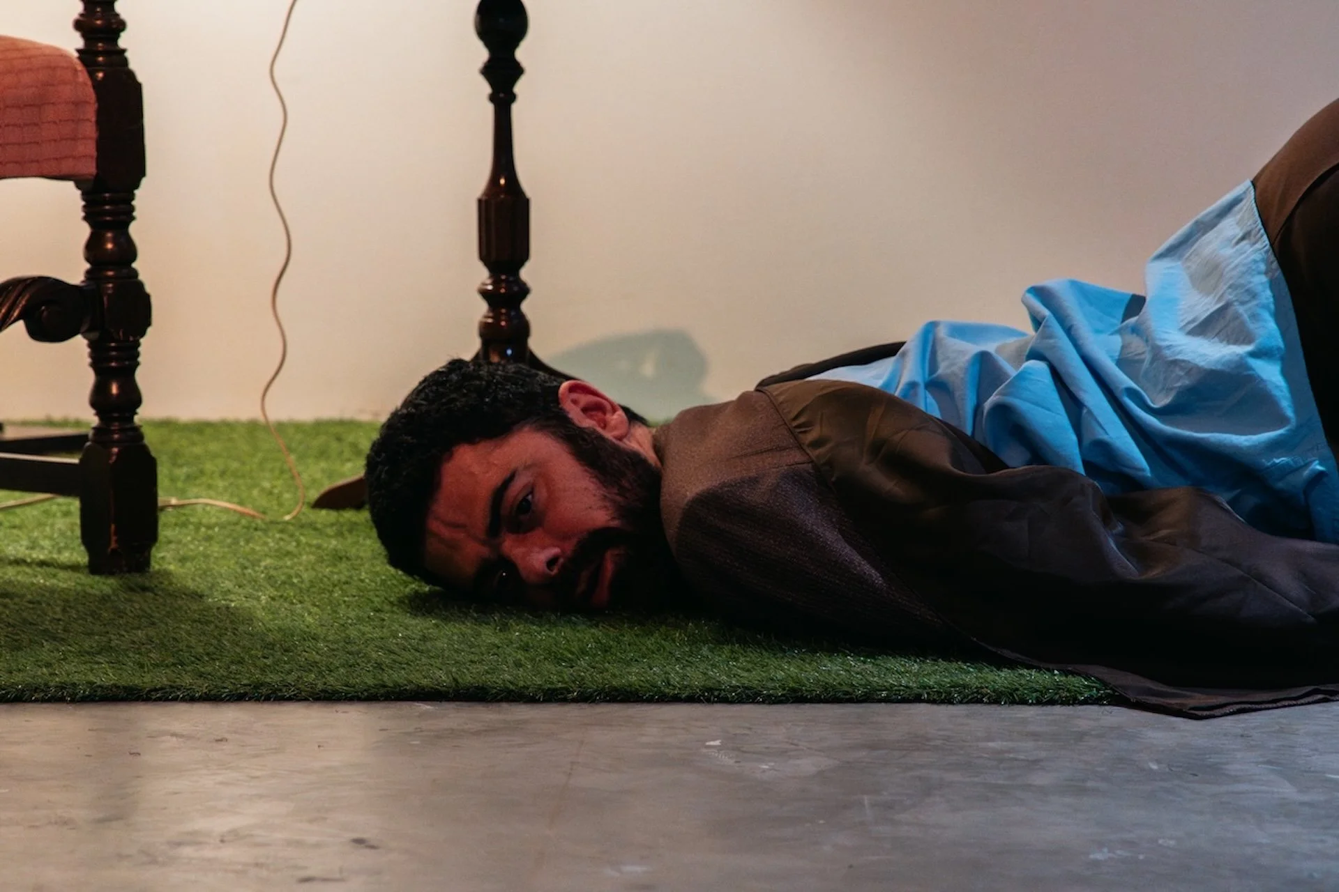 Our process began as a response to the Iranian film, The Cow (1969), which tells the story of a man’s unparalleled love for his cow, and his immense grief upon her death—an event that leads him to believe he has become his cow. TechniCowlour is an invocation of the body and the senses, undermining the customary cultural inertias in favour of an experimental adaptation. Here, nostalgia becomes an entry to presence rather than a retreat from it. Through the interplay of mythology, cinema, and haptic exploration, the piece asks: What does it mean to live between worlds that carry us across times?”